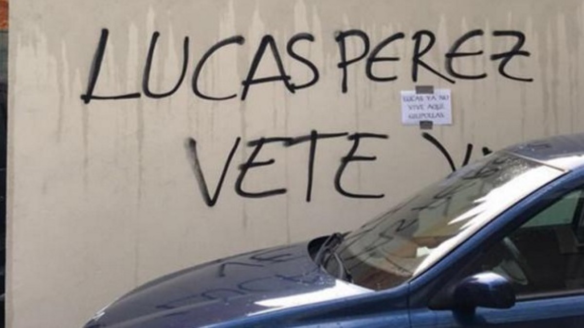 “Lucas Pérez, vete ya” decía la pintada sobre una pared que creían pertenecía al domicilio del futbolista, a lo que una ingeniosa respuesta por parte de uno de los vecinos terminó por aclarar que Lucas ya no vive más en esa dirección.