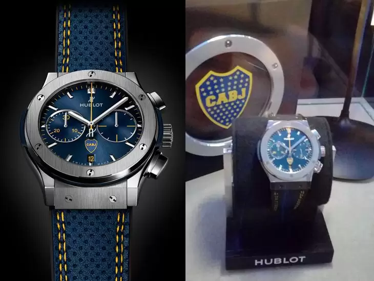 Se trata de Hublot, marca de relojes de lujo que se distinguió por haber formado parte de la última Copa Mundial de la FIFA y que para esta ocasión diseñó 50 ejemplares de un modelo especial, de edición limitada, llamado "Hublot Classic Fusion Chronograph Boca Juniors".