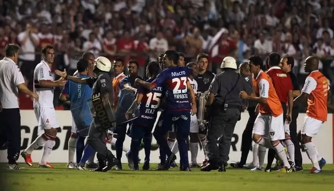“El elenco argentino no había salido a recibir el reconocimiento como finalista del certamen que lo fue ganado por el San Pablo, pues se sucedieron situaciones ajenas al espectáculo que obligaron a suspender el partido antes del arranque del segundo tiempo”, sostuvo la CONMEBOL a través de un comunicado, no sin antes añadir: “No hace otra cosa que hacer justicia en el fútbol”.