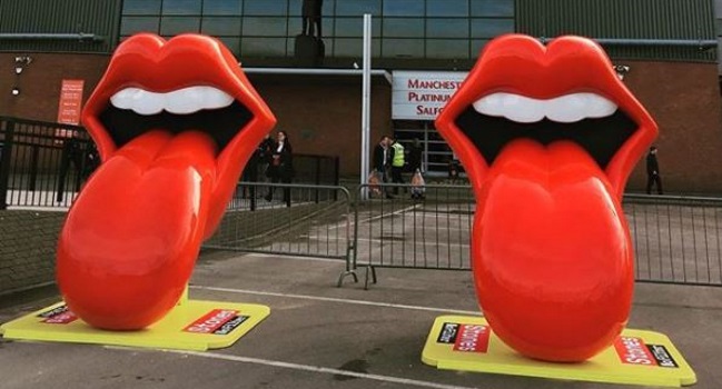 Manchester United será uno de los equipos que tenga el placer de albergar en su cancha a Mick Jagger, Keith Richards, Charlie Watts y Ron Wood. Para promocionar la fecha en la que tocarán en Old Trafford la banda no tuvo mejor idea que colocar en las puertas de la tribuna que lleva el nombre de Sir Alex Ferguson, dos esculturas de la famosa lengua “Stone”.