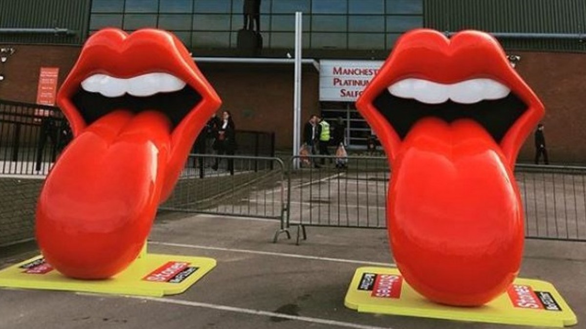 Manchester United será uno de los equipos que tenga el placer de albergar en su cancha a Mick Jagger, Keith Richards, Charlie Watts y Ron Wood. Para promocionar la fecha en la que tocarán en Old Trafford la banda no tuvo mejor idea que colocar en las puertas de la tribuna que lleva el nombre de Sir Alex Ferguson, dos esculturas de la famosa lengua “Stone”.