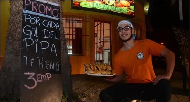 La idea surgió a partir del hijo de los dueños del comercio que aprovechó todos los memes que circulan teniendo como protagonista a Higuaín y su mal momento con el arco. Tras ser aprobada la idea por el padre, colocaron un cartel en la puerta del comercio con una frase bien clara: “Por cada gol del Pipa te regalo 3 empanadas”.
