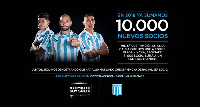 A través de sus redes sociales, Racing Club anunció su nuevo récord de asociados esta semana tras llegar a un total de 10 mil socios en lo que va del 2018.