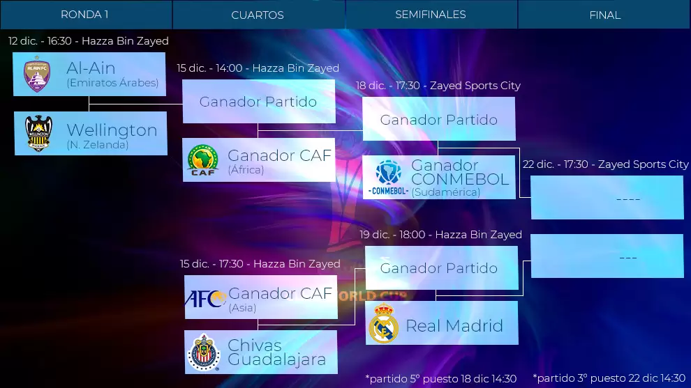 Del otro lado, será el ganador de la llave entre las Chivas de Guadalajara y el campeón asiático el que defina su lugar frente al Real Madrid en semifinales.