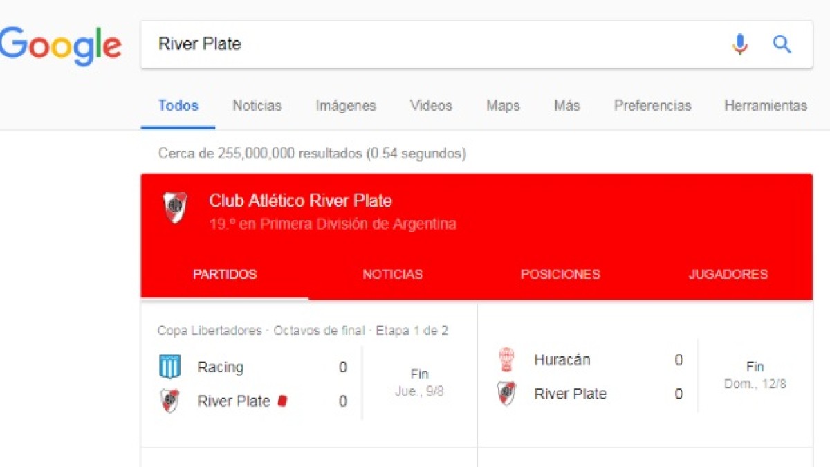 En Argentina se trata de River Plate, el equipo “Millonario” es el equipo más buscado en el buscador por las personas que ingresan a la página web. Mientras el Real Madrid es el más buscado en 97 países en total, River es junto al Flamengo de Brasil los dos equipos que reciben más búsquedas en sus países.