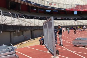 En un esfuerzo que para garantizar la seguridad ubicará barreras de dos metros sobre la pista atlética, la gerencia del estadio promete ubicar las respectivas banderas por debajo de las plateas y por ende ganar considerablemente en los ángulos de visión desde todo el campo.
