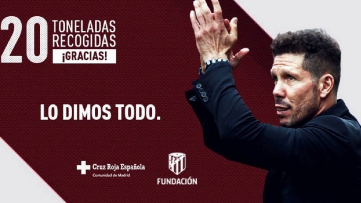 A través de un pedido masivo en redes sociales, todos los hinchas del Colchonero acudieron al último partido con al menos un alimento no perecedero en sus manos a fin de donar todo o recaudado a la Cruz Roja española.
