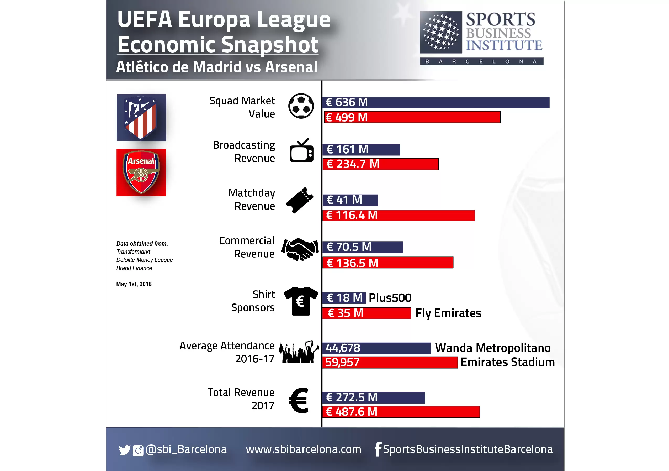 La UEFA Europa League no quedó exenta del análisis y evaluó también la semifinal que se definirá entre el Arsenal y el Atlético de Madrid, en cifras que más allá de superar con creces a cualquier otra Confederación del mundo, demuestran la paridad que se busca desde el organismo entre sus principales actores.