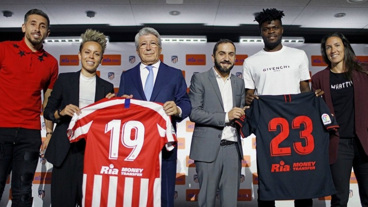 Del acto participaron el presidente del club, Enrique Cerezo, y por parte de la empresa, José Cabral, director general en Europa de Ria Money Transfer. Además, también se hicieron presentes los jugadores Héctor Herrera, Thomas Partey, Amanda Sampedro y Silvia Meseguer, que representaron a los equipos masculino y femenino.