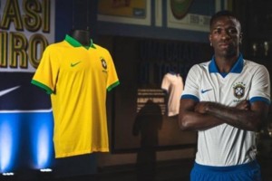 El jugador Vinicius Júnior fue el encargado de vestir la indumentaria, que ni bien se dio a conocer, tuvo muchas críticas. La casaca tiene el blanco como color original, porque los diseñadores decidieron volver a usar el color que fue el original de la selección en sus comienzos.