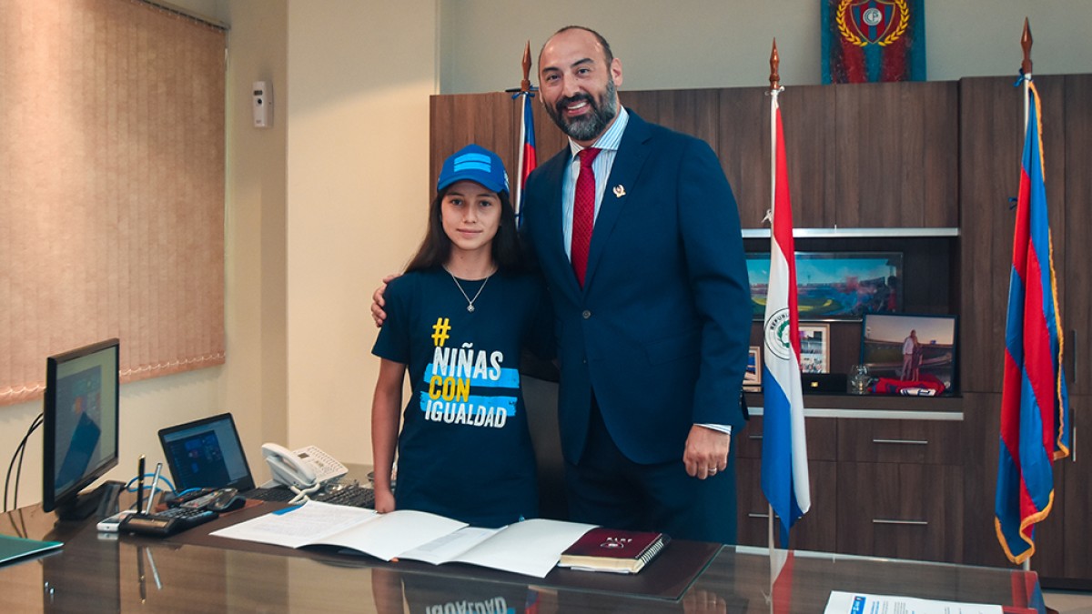 Bajo el lema “Si pueden verlo, pueden serlo” Maria Estefanía, niña de 14 años y de la ciudad de Maria Antonia, asumió simbólicamente la presidencia del club con el fin de visibilizar la situación de las niñas en Paraguay y el mundo creando oportunidades para que las niñas participen activamente en la creación de un cambio duradero hacia la igualdad, a través del involucramiento de los diferentes sectores y de los garantes de derechos, proporcionando espacios políticos y económicos para que las niñas aprendan, lideren, decidan y prosperen. La firma y el acto protocolar se realizaron en la oficina presidencial, donde Maria Estefania asumió como Presidenta del Club Cerro Porteño, en presencia del Dr. Raúl Zapag.