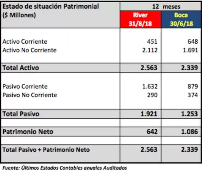 Lo cierto es que si se comparan los números de los balances anuales de River y de Boca, el resultado sorprenderá a varios, pero se tratan de dos balances muy parecidos a excepción del ítem “Deuda Financiera en Moneda Extranjera”.