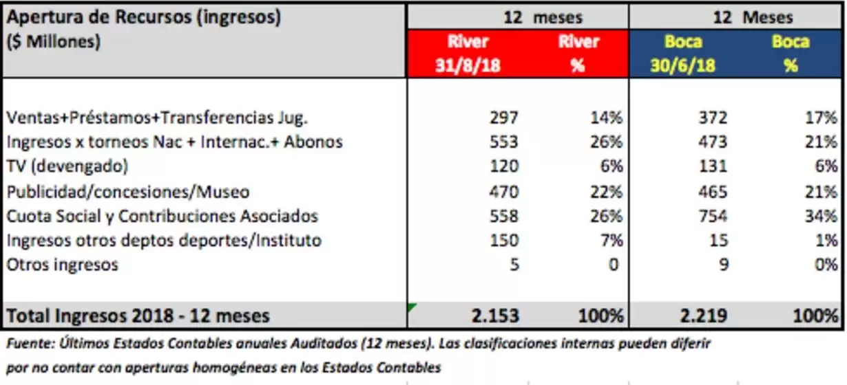 Boca Juniors y River Plate son rivales de toda la vida. En el fútbol, el vóley, el handball o el básquet, cada vez que se tiene que enfrentar el mundo se detiene. En este caso, los dos equipos más populares de Argentina también se enfrentan en lo que tiene que ver a los números de sus balances.