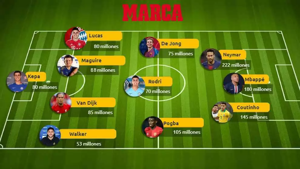 En esta sintonía, el Diario Marca se animó a conformar un equipo con el Once Ideal de transferencias más caras de la historia, conforme al pase más millonario puesto por puesto.
