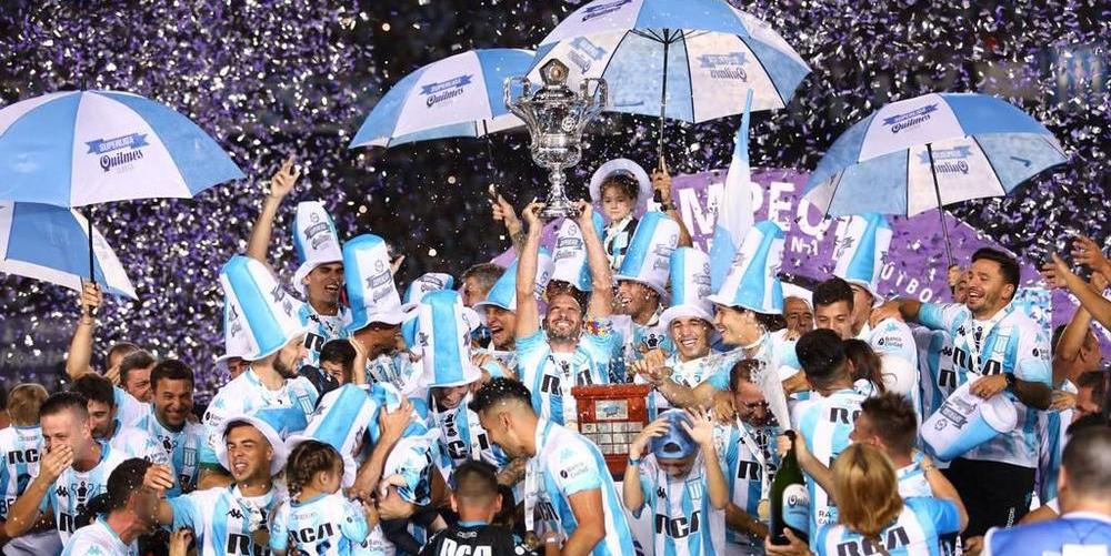 Eduardo Coudet, entrenador de Racing, lució en la fiesta del campeón, que se llevo a cabo en el estadio de La Academia, un traje elaborado por la marca italiana Giorgio Redaelli.