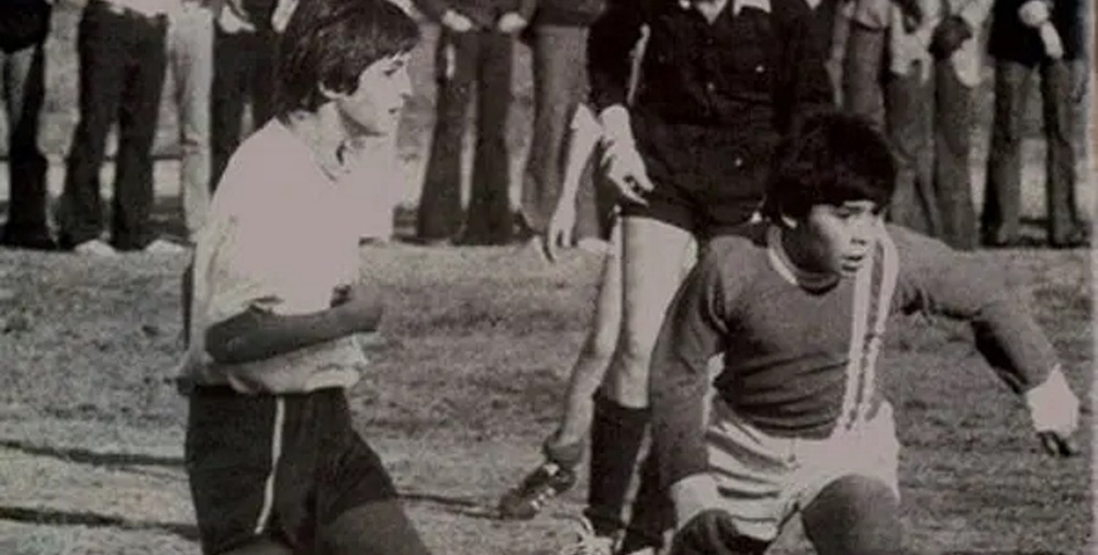 De chico y vestido para la ocasión, #Maradona jugó un torneo en donde, sin saberlo, se cruzó con @cuervotinelli