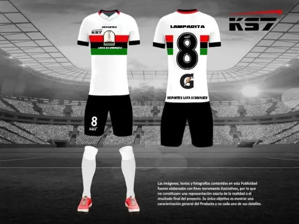 Deportes Lota Schwager tendrá en su camiseta las franjas en sentido vertical y un cuello en V de color negro. En el caso en la camiseta del Club Deportes Lota Schwager, si bien solo se ha presentado un avance, en este caso el club llevará las franjas con los colores tradicionales pero con las franjas horizontales.
