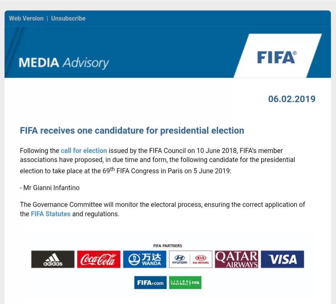 De cara a las elecciones que se llevarán a cabo este año para definir al presidente de la FIFA, el único candidato oficial sigue siendo el presidente actual, Gianni Infantino.