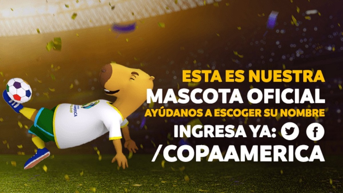 "El capibara está presente en América del Sur y es conocido por relacionarse bien con todos los animales. Simboliza la amistad, la forma amable con que los brasileños recibirán a todos los aficionados del fútbol en esta gran celebración del fútbol sudamericano. "Invitamos al público a participar en la elección del nombre de nuestra mascota", explica Thiago Jannuzzi, gerente general de competición del Comité Organizador Local de la CONMEBOL Copa América Brasil 2019.