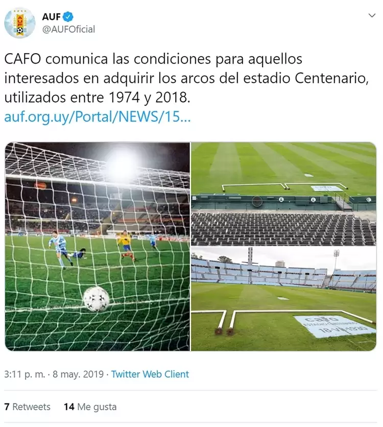 Debido a las más recientes regulaciones de la FIFA con respecto a las medidas y condiciones para los campos de juego de fútbol, el Estadio Centenario de Montevideo debió reemplazar los históricos arcos que estaban allí desde 1974.