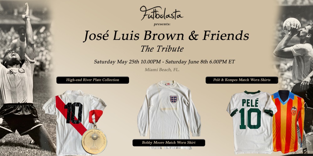 Futbulasta se honra en estructurar una subasta para destacar a uno de los futbolistas más increíbles como ser humano, José Luis "Tata" Brown". "Tata" se enfrenta a una gran batalla y es con gran respeto y estima que presentamos su legado, mediante una tabla cronológica de sus años como jugador, entrenador y colecciones de muchos de sus compañeros de equipo y amigos. Nos sentimos complacidos de que jugadores como Jordi Cruyff (Ex FC Barcelona – Manchester United) and Osvaldo Piazza (Leyenda de Saint Etienne) hayan colaborado con esta subasta.
