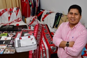 Carlos Coa tiene 38 años y desde hace 25 que colecciona camisetas, revistas, bufandas y cualquier artículo que tenga una banda roja. En su casa del barrio San Juan de Lurigancho tiene la envidia de cualquier hincha de River.