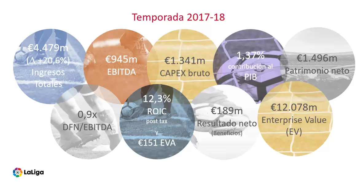 La facturación en la temporada 2017/18 ha sido de 4.479 millones de euros y las previsiones de la competición es que los clubes también tengan mejoras en los índices de rentabilidad con un beneficio neto de más de 225 millones de euros esta temporada, frente a los 189 millones del último ejercicio.