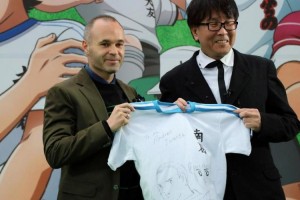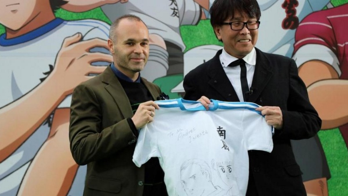 Iniesta inauguró una estación de trenes con los personajes de Supercampeones