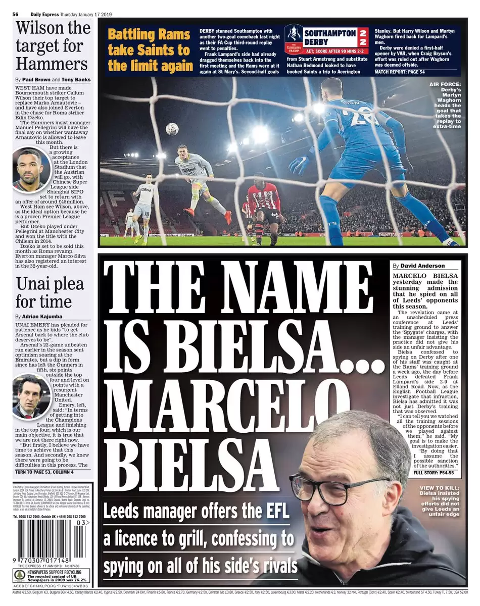 Tras el último triunfo del Leeds United ante el Derby County que derivó en la polémica hacia el entrenador argentino, Marcelo Bielsa, por el supuesto espionaje del entrenamiento de su rival, el Loco convocó a una conferencia de prensa este miércoles y despejó todas las dudas al revelar que espió a todos sus rivales anteriormente.