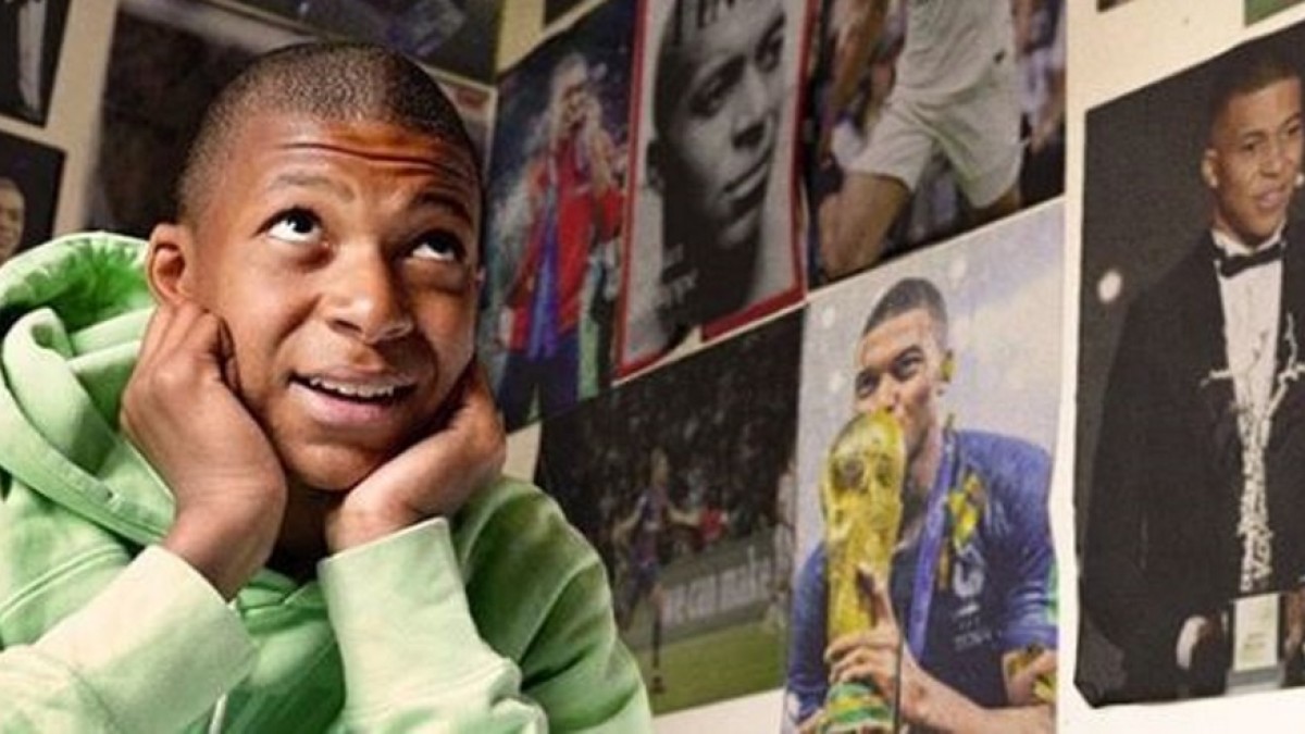 Entre las imágenes que se pueden ver está cuando le tocó al jugador del PSG levantar la copa del mundo, la Copa de Francia y el trofeo KOPA. La cara de Mbappé es la del mismo chico que tenía a CR7 en sus paredes.