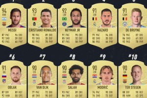 EA Sports publicó cuáles son los 100 mejores jugadores del videojuego FIFA 2020, lista que encabeza Lionel Messi con 94 puntos y completan el podio Cristiano Ronaldo (93) y Neymar (92).