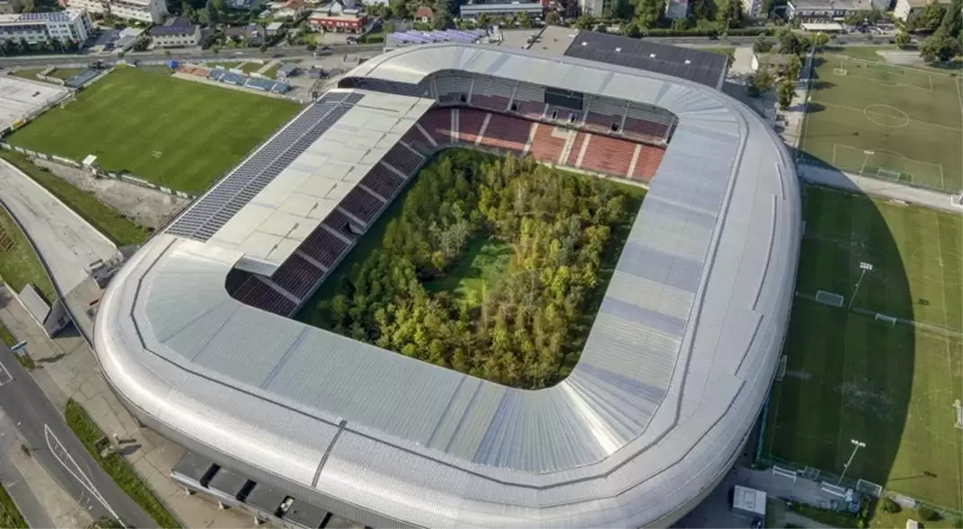 EL VERDADERO BOSQUE @AustriaKLA prestó su estadio para una obra de arte que plantó un bosque en el campo de juego a fin de concientizar sobre los problemas climáticos que afronta el planeta