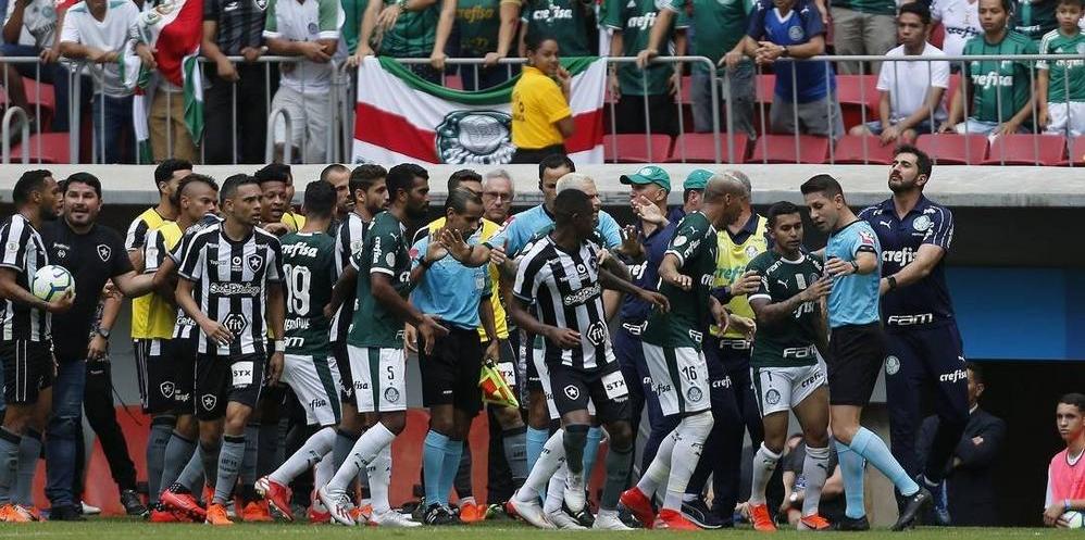 El encuentro había terminado 1 a 0 a favor de Palmeiras, cuyo gol provino de un penal cobrado por el árbitro con ayuda de los asistentes de video. Eso no fue lo que desató el enojo, sino que el referí sancionó la pena una vez que ya se había puesto en juego la pelota. De hecho, el propio árbitro había amonestado al jugador de Palmeiras por simulación.