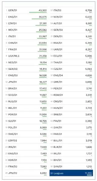 En los últimos cinco años, el torneo que más aficionados tuvo en las canchas ha sido la Bundesliga, con un 18% más en comparación con la Premier League Inglesa. Por el lado de las segundas divisiones, el propio torneo del ascenso alemán es también el que cuenta con mayor promedio de espectadores, también por delante del inglés.