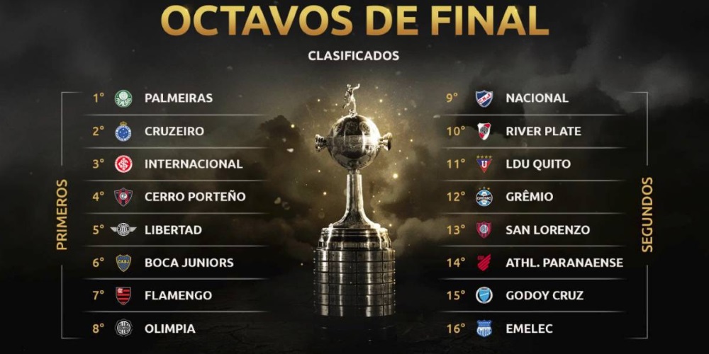 En este contexto encontramos que Nike es la firma con más equipos sponsoreados técnicamente en los Octavos de final del torneo al vestir a cinco (Inter de Porto Alegre, Boca Juniors, San Lorenzo, Cerro Porteño y Libertad), seguido por adidas con cuatro (River Plate, Flamengo, Olimpia y Emelec), Umbro con cuatro (Gremio, Cruzeiro, Athlético Paranaense y Nacional de Uruguay), PUMA con dos (Liga de Quito y Palmeiras) y Kelme con un solo representante (Godoy Cruz).