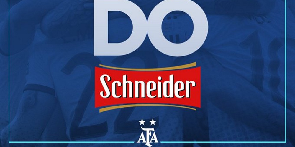 Cerveza Schneider firmó un acuerdo estratégico con la Asociación del Fútbol Argentino para convertirse en el nuevo Sponsor Oficial de la Selección Nacional, y de este modo, refrescar la ilusión por la celeste y blanca. Este compromiso alcanza a todas las selecciones nacionales, femeninas y masculinas, por los próximos 3 años.