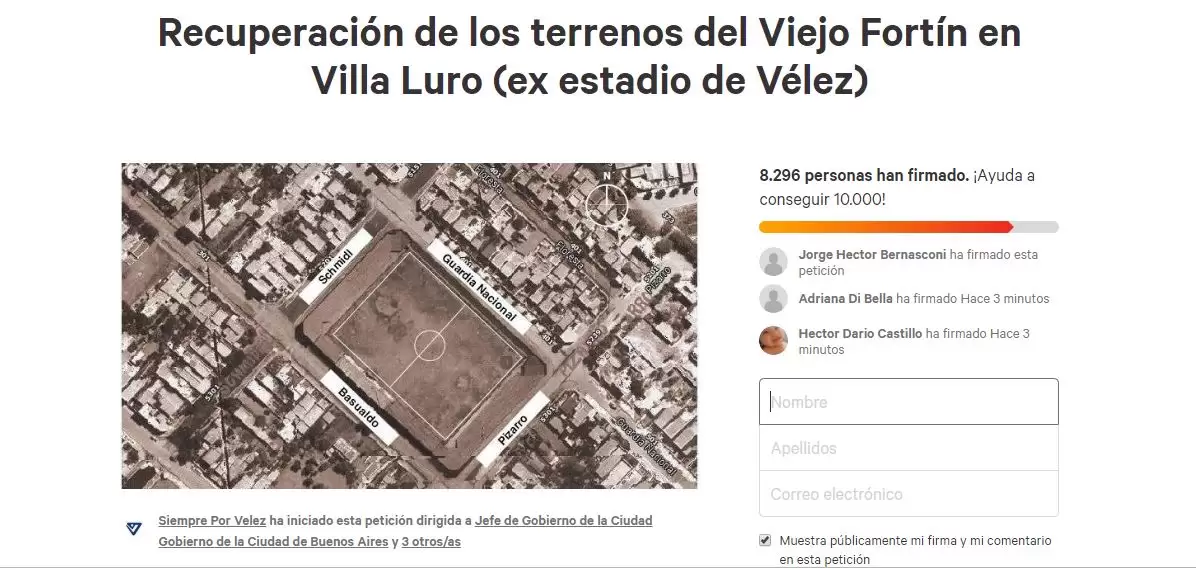 Además, se aclara que la firma de esta petición es el primer paso para luego convocar a los hinchas y socios de Vélez y vecinos del barrio de Villa Luro a acercarse a las autoridades del gobierno de la ciudad de Buenos Aires.
