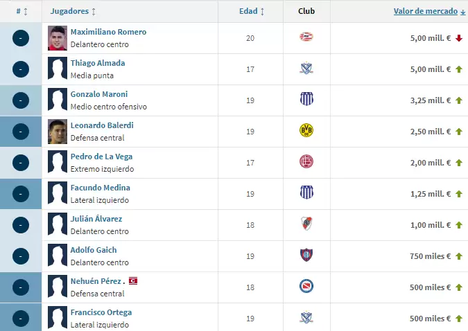 No te pierdas los perfiles de los más caros por país y del torneo a continuación.