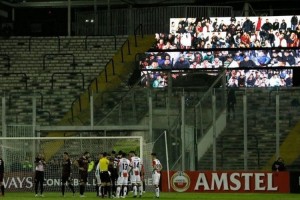 Se trató justamente de una hinchada virtual al colocar en una de las tribunas que estaba detrás de los arcos una serie de pantallas LED donde se podía apreciar a público viendo el partido. Como ya es sabido el equipo chileno tiene un vínculo muy importante con el pueblo palestino, ya que fue fundado por inmigrantes en 1920.