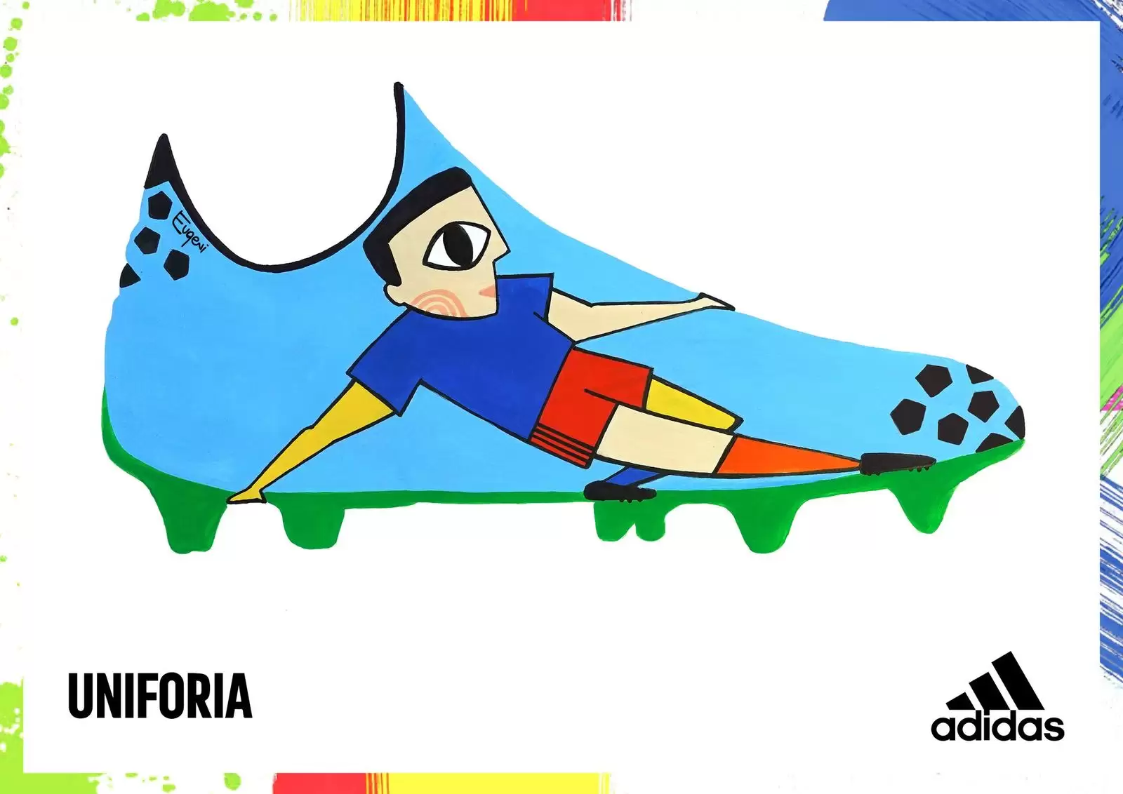adidas, profundizando y linkeando el vínculo entre el arte y el concepto UNIFORIA, convocó a diversos artistas argentinos para que apliquen su visión particular y diversas técnicas en el diseño de supropia interpretación del pack UNIFORIA.