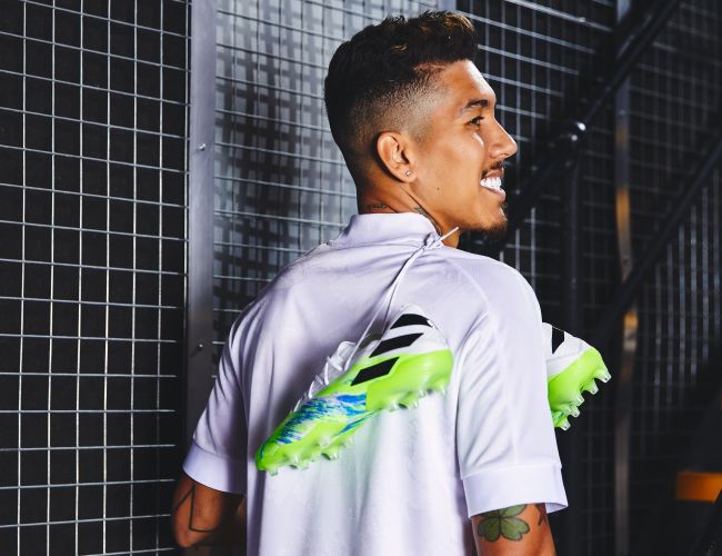 El pack UNIFORIA muestra una versión rediseñada de los botines Predator Mutator 20+ con DEMONSKIN -una nueva tecnología innovadora que le proporciona a los jugadores un mejor control de la pelota, pases más precisos y tiros al arco con más efecto- además de detalles de pinceladas en colores Pop y Signal Green que contrastan con el fondo blanco de los botines.