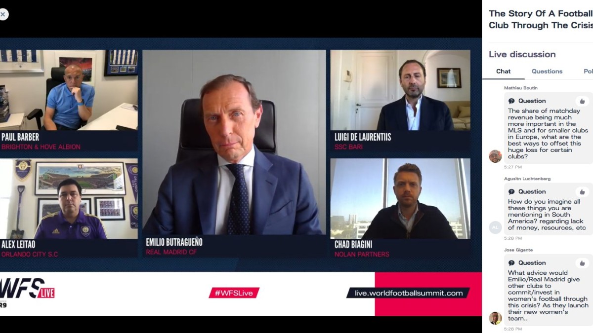 "Estamos en una situación de incertidumbre. Ésta es una crisis mundial y va a condicionar al fútbol. No sabemos exactamente lo que va a pasar, pero la situación va a ser diferente este verano", dijo Butragueño durante su participación en una mesa redonda en el foro 'WFS Live'.