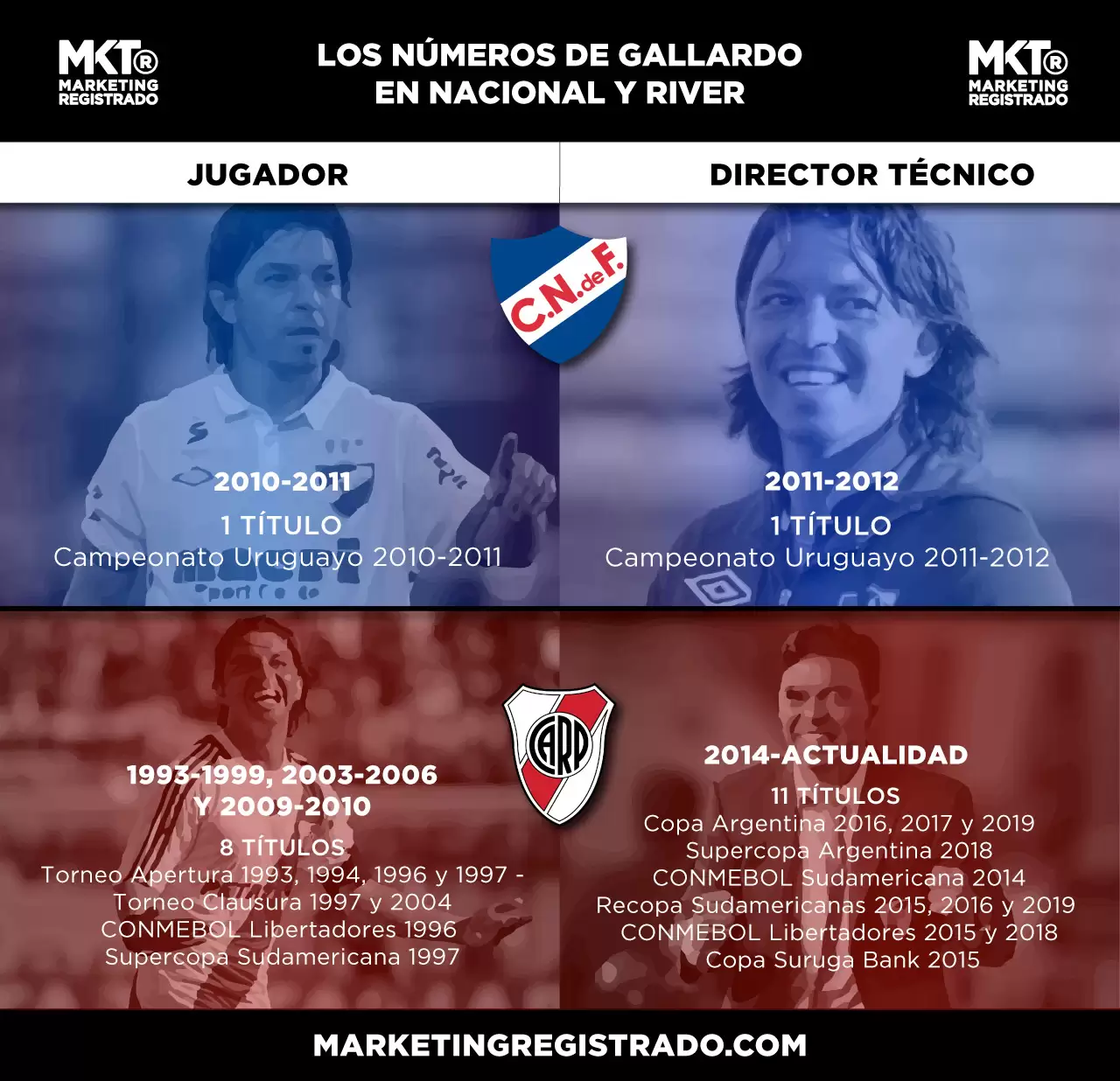 Números que lo posicionan como uno de los mejores entrenadores de la actualidad y que reflejan que la Libertadores es de los torneos que mejor le sientan. Un año más que el River de Gallardo llega a instancias finales y que ilusiona a los hinchas Millonarios.