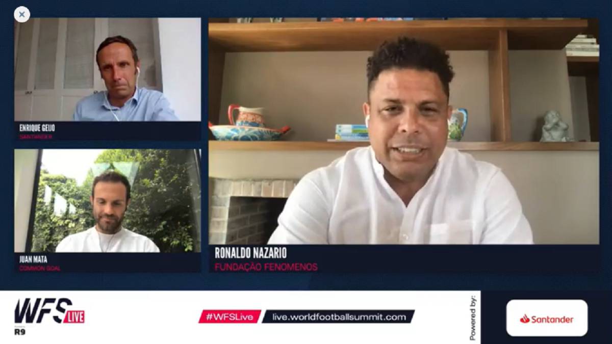 El exfutbolista internacional brasileño y empresario Ronaldo Nazario aseguró que los jugadores de fútbol están "cada vez más comprometidos" con causas sociales y son "más conscientes de la fuerza que tienen" para impulsar acciones benéficas, durante una charla con el jugador Juan Mata en el foro virtual 'WFS Live'.