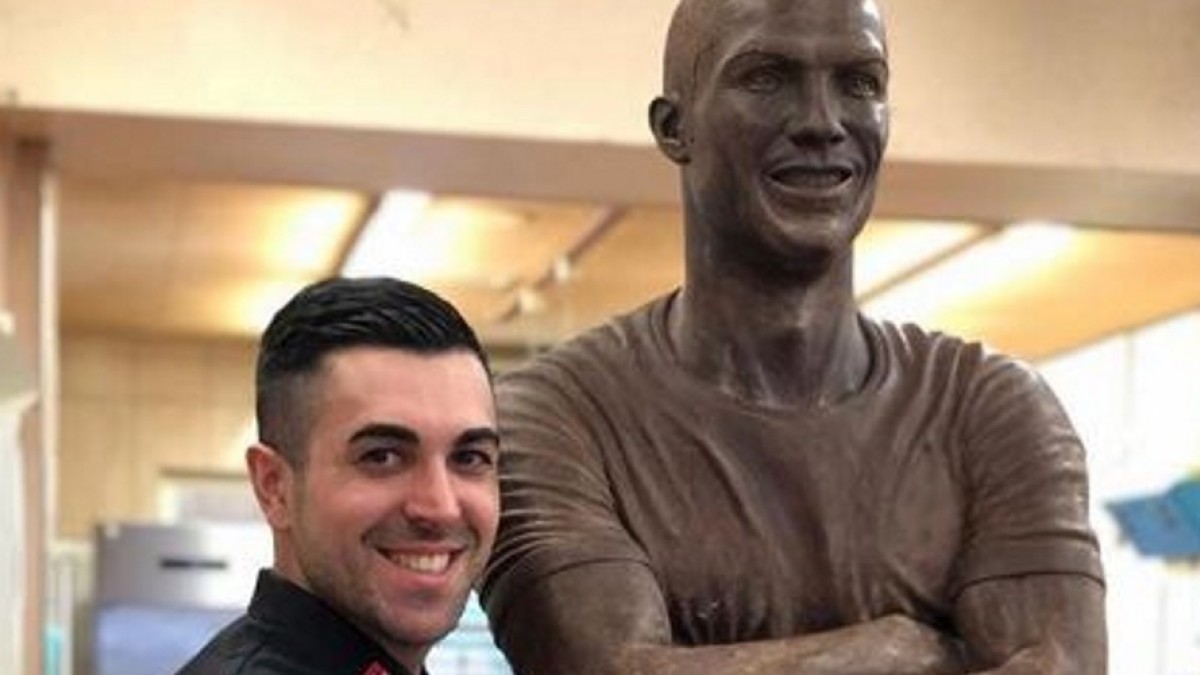 Crearon una estatua de chocolate de Cristiano Ronaldo que pesa 120 kilos y mide como él