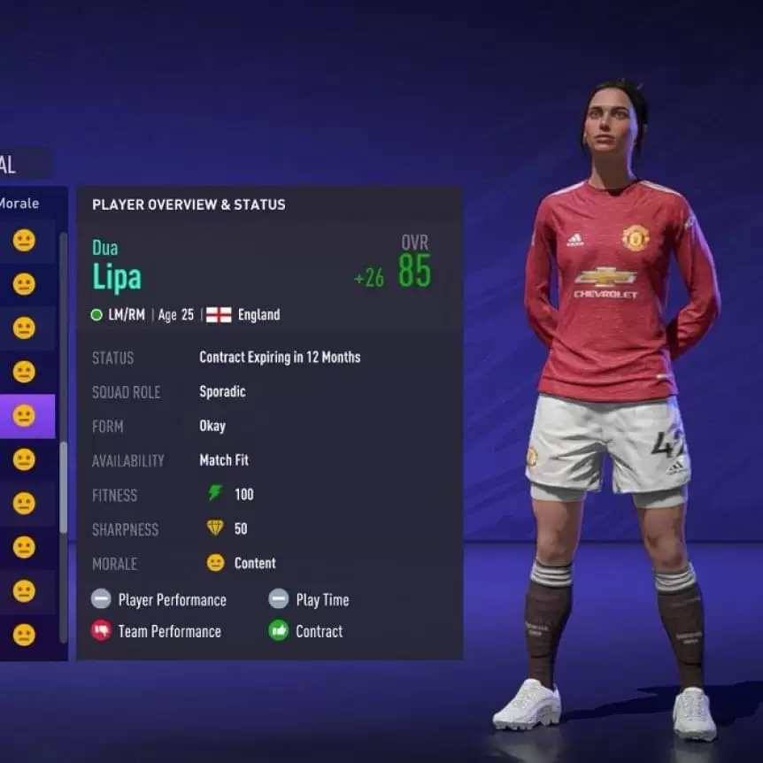 Según lo que parece, Dua Lipa sería incluída como un personaje jugable dentro del FIFA 21. La idea sería que la cantante británica tuviera su propia jugadora y que pudiera ser elegible en el Modo Volta.