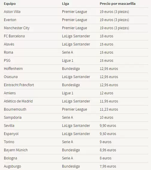Por el momento, 49 equipos de las 5 grandes ligas de Europa vendieron sus propios accesorios, cada uno con distintos precios de acuerdo a sus necesidades. El Barcelona es el que más caro los está vendiendo a un precio de 18 euros por cada uno. Siendo el plantel más caro de Europa, los españoles dejaron de percibir ingresos de entre 150 y 175 millones de euros. Estas cifras corresponden a lo que son ganancias por concepto de venta de entradas por partidos en el Camp Nou y venta de merchandising.