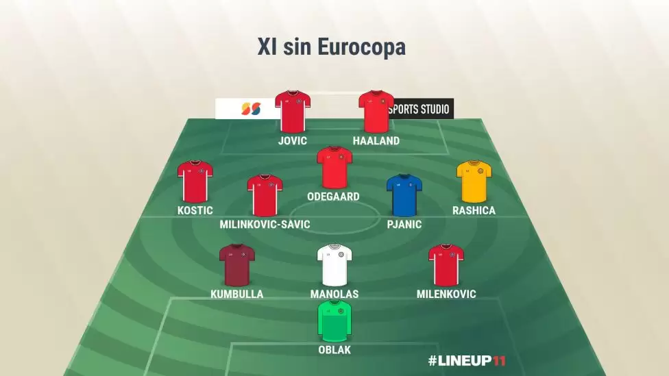 Yendo puesto por puesto, saldrían con: Jan Oblak (Eslovenia); Kostas Manolas (Grecia - 32M€), Nikola Milenkovic (Serbia - 28M€) y Marash Kumbulla (Albania - 25M€); Filip Kostic (Serbia - 32M€), Miralem Pjanic (Bosnia - 50M€), Sergej Milinkovic-Savic (Serbia - 65M€) y Milot Rashica (Kosovo - 22M€); Martin Odegaard (Noruega - 45M€); Luka Jovic (Serbia - 25M€) y Erling Haaland (Noruega - 80M€).