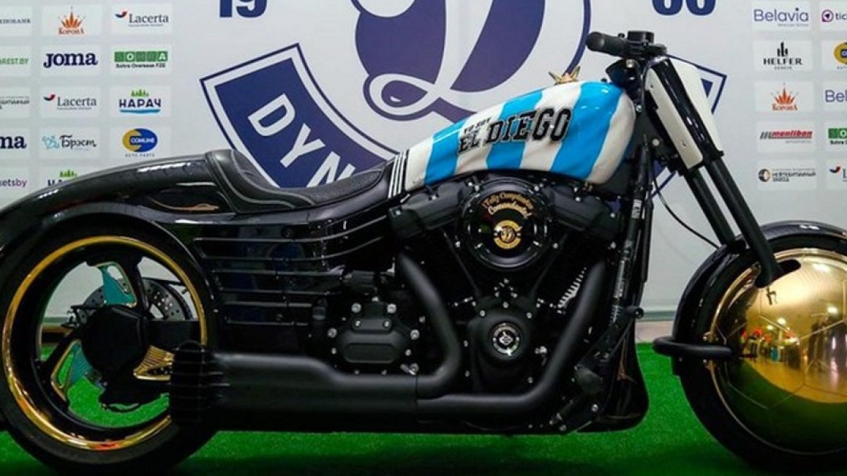 Fue justamente el Dínamo Brest, equipo de Bielorrusia que lo nombró primero “presidente del fútbol” y luego “presidente honorario”, le regaló a Maradona una Harley Davidson Fat Bob 107, totalmente personalizada. Para Diego fue amor a primera vista, ya que quedó encantado con su diseño e incluso el detalle de su nombre “Yo soy Diego”.