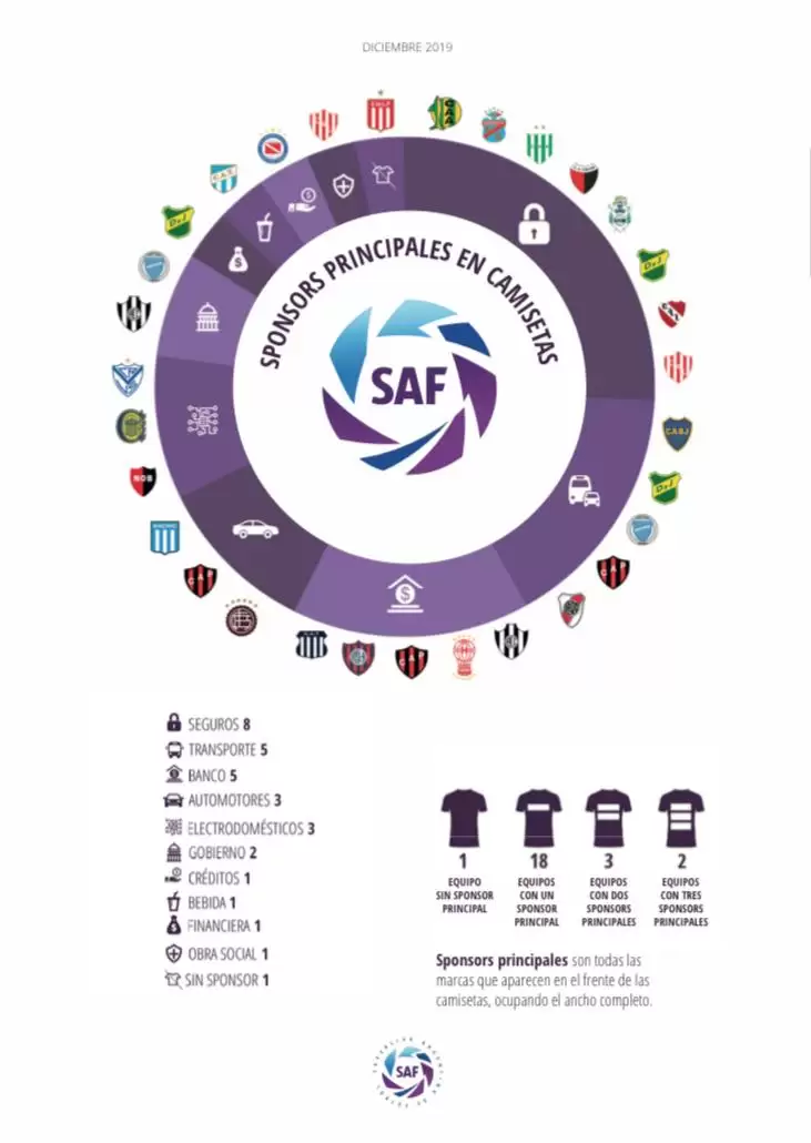 Relevamos el último informe completo con un amplio repaso por cada uno de los socios comerciales que apuesta por la SAF en su nuevo modelo de gestión, de la misma manera que cada una de las firmas que acompaña de forma particular a cada uno de los 24 equipos que conforman el certamen.